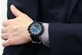 این ساعت با ترکیب رنگهای مشکی و سرمهای، جلوهای مدرن و مقاوم دارد. صفحه نمایش آن شامل نمایشگرهای مختلفی برای کرونوگراف، تقویم و ساعت جهانی است که به زیبایی و کارایی آن افزوده است. بند چرمی مصنوعی آن نیز راحتی و دوام بالایی را فراهم میکند.