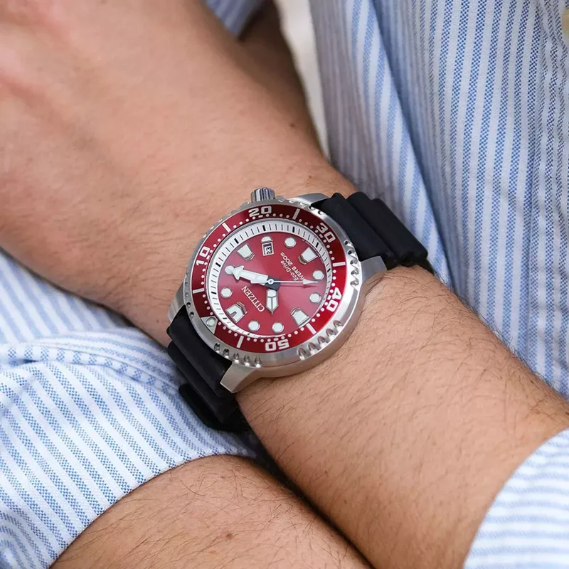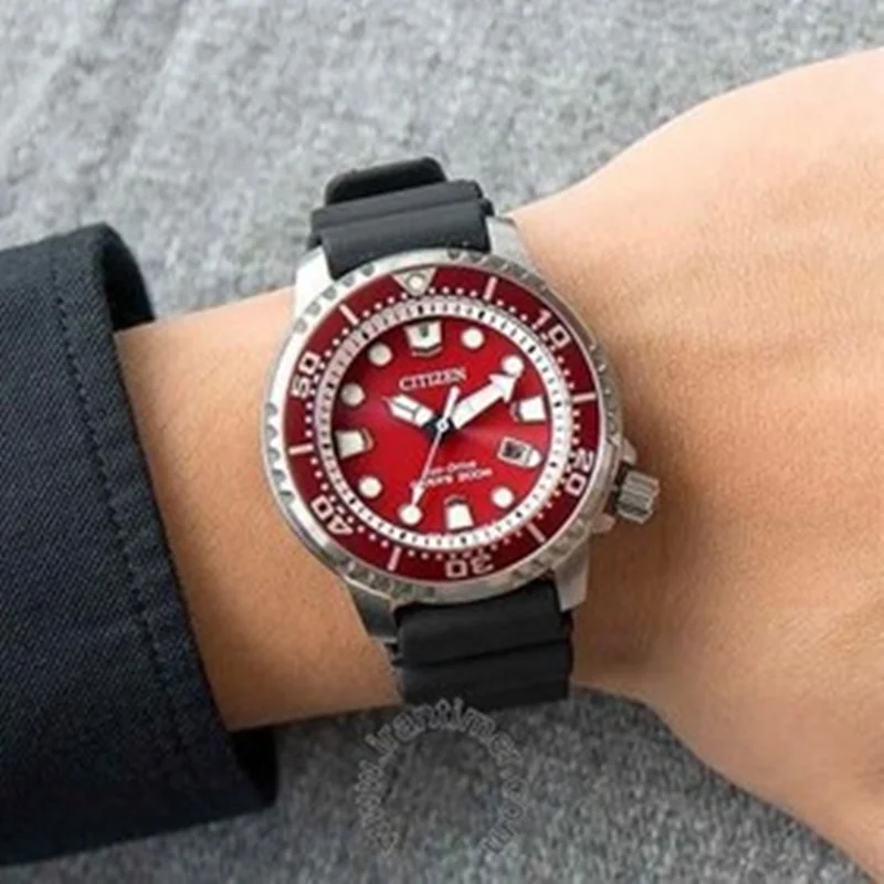 سیتیزن پرومستر دریانوردی در این مدل از سیتیزن دریانوردی مقاومت در برابر فشارآب تا عمق ۲۰۰متر در نظر گرفته شده تا امکان استفاده در تمام شرایط مخصوصا غواصی برای شما فراهم گردد تامین انرژی در این مدل به وسیله نور محیط بوده و شما نیازی به تعویض باتری نخواهید داشت و هر روز شارژ توسط نور انرژی مورد نیاز شش ماه را تامین می نماید بزل گردان در روی قاب این مدل کاربرد محاسبه درجات ،نقشه خوانی و تایمر آنالوگ را دارا می باشد