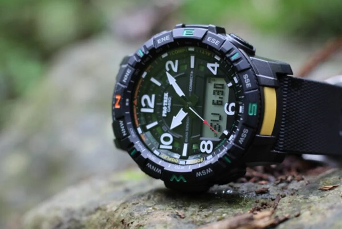 | امکانات دیگر | کرنوگراف ,تقویم ,روزهای هفته ,روز و شب ,شب نما ,زنگ هشدار ,دو زمانه ,ارتفاع سنج ,قطب نما ,دماسنج ,نور پشت صفحه ,ساعت کشورها ,تایمر شمارش معکوس ,فشار هوا(بارومتر) |