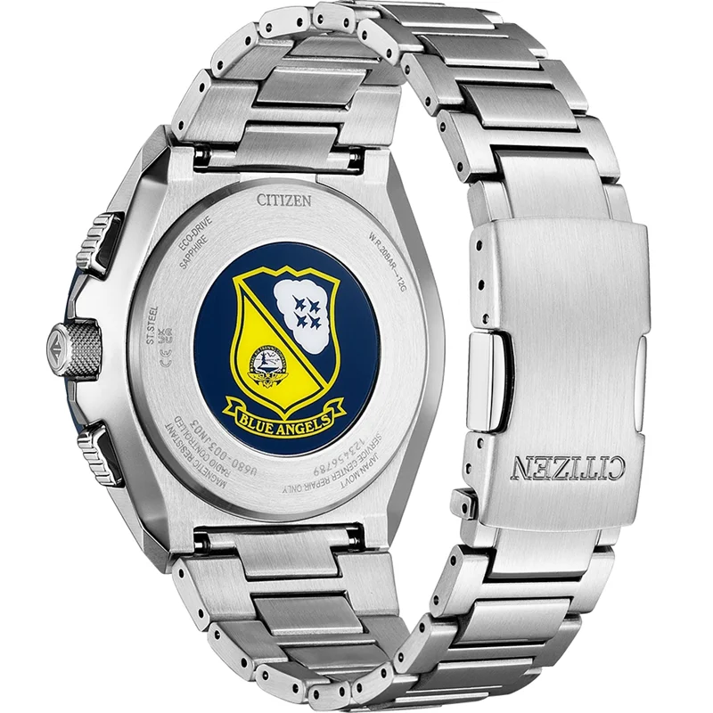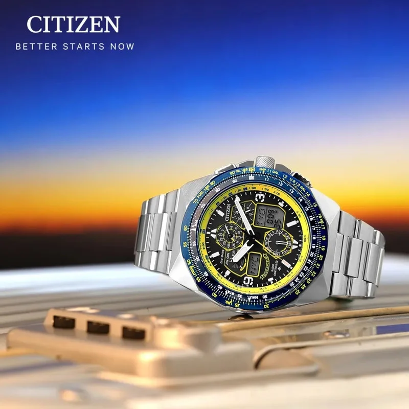 یکی از جذاب ترین مدل های هوانوردی سیتیزن از سری مدل های بلوآنجل طراحی و ساخته شده برای تیم آکروجت هوایی ایالات متحده در این مدل شما یکی از بالاترین پتانسیل های شارژ سولار را در اختیار خواهید داشت و ساعت شما توانایی نگهداری شارژ تا ۳/۵ را دارا می باشد به علاوه بزل گردان ساعت با دقت بسیار بالا امکان محاسبات هوانوردی را در اختیار شما قرار می دهد سیستم رادیو کنترل به کار رفته در این ساعت با برقراری ارتباط با امواج رادیویی قرار گرفته در کشورهای اروپای غربی امریکای شمالی چین و ژاپن ساعت شما را به صورت خودکار تنظیم می نماید