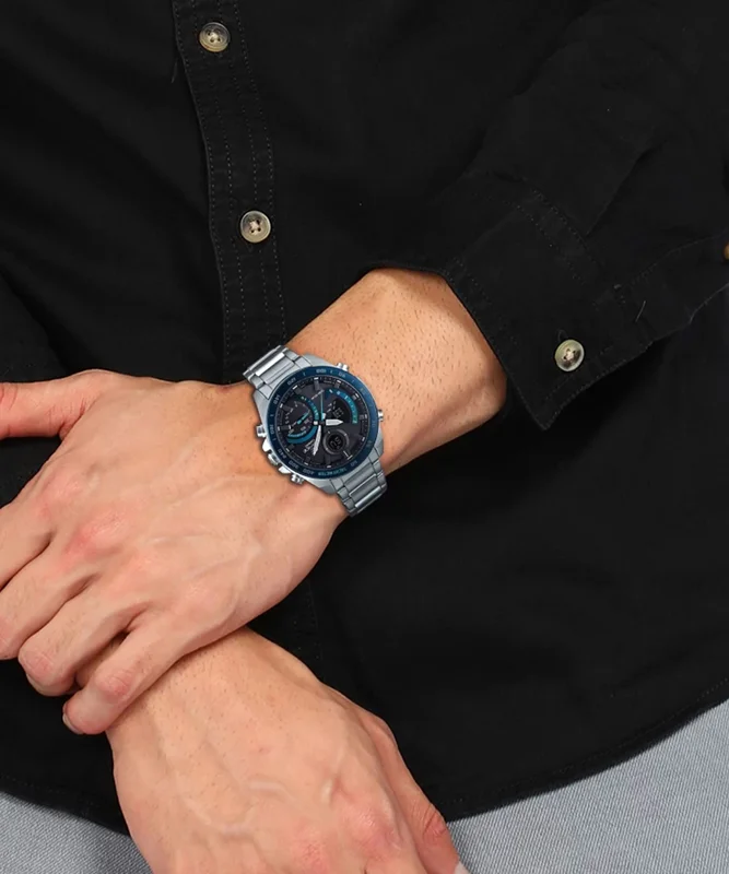 طراحی و ساختار:ساعت مچی مردانه کاسیو مدل ECB-900DB-1BDR از سری ادیفیس (Edifice) با طراحی مدرن و جذاب خود، توجه بسیاری را به خود جلب کرده است. این ساعت با استفاده از استیل ضد زنگ ساخته شده که علاوه بر مقاومت بالا، ظاهری شیک و کلاسیک دارد. بند استیل نقرهای و صفحه نمایش دیجیتال و آنالوگ، جلوهای خاص به این ساعت میبخشد.